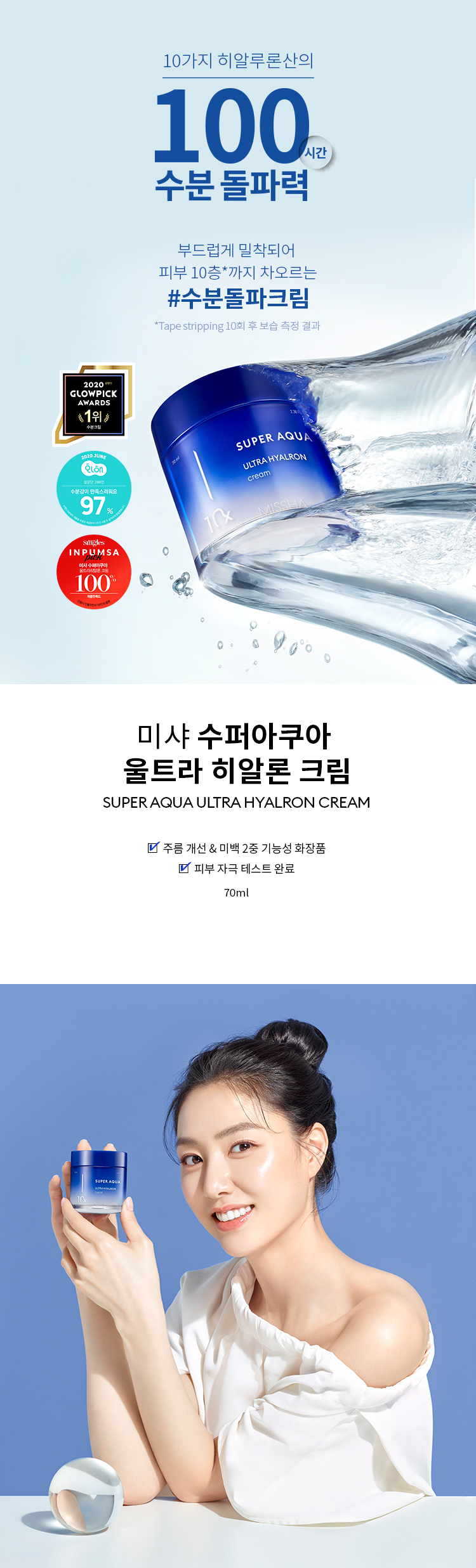 使用面部保濕霜Missha Super Aqua Ultra Hyalron霜的好處: