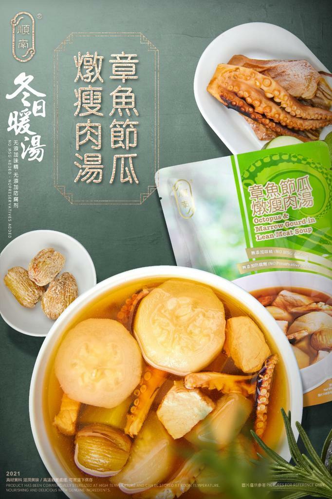 精選章魚配搭瘦肉及節瓜,以慢火燉煮。有肉有瓜有章魚,人口甘香, 惹味非常。